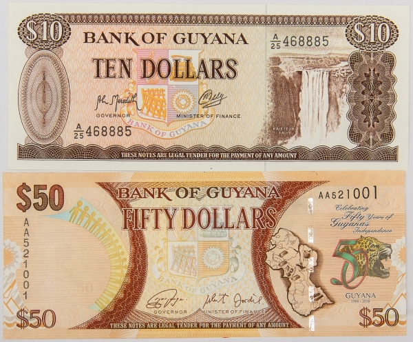 • Numismática, GUYANA. Duas Cédulas Flor de Estampa