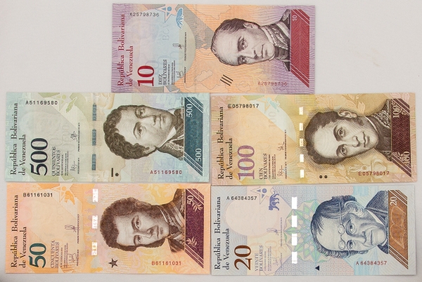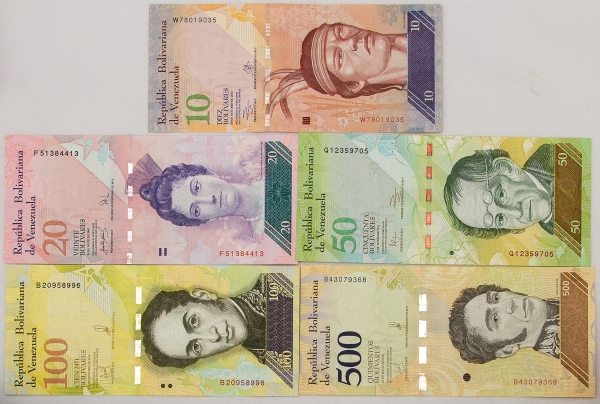 • Numismática, VENEZUELA. Cinco Cédulas Flor de Estampa