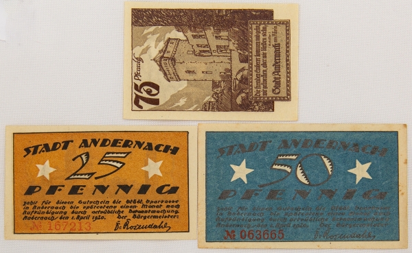 • Numismática, NOTGELD. Três Cédulas Andernach