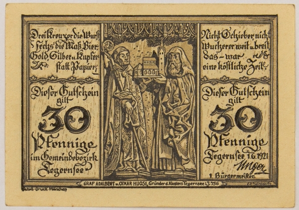 • Numismática, NOTGELD. Uma Cédula Tegernfee 30 Pfennig