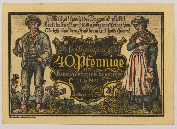 • Numismática, NOTGELD. Uma Cédula Tegernfee 40 Pfennig