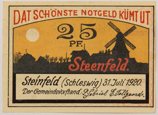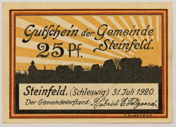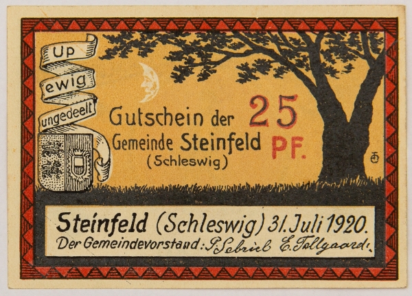 • Numismática, NOTGELD. Uma Cédula Steinfeld 25 Pfennig 1920
