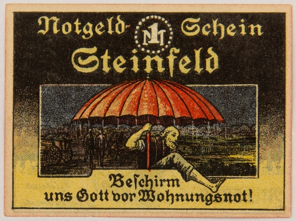• Numismática, NOTGELD. Uma Cédula Steinfeld 1 Mark 1920