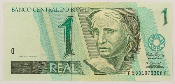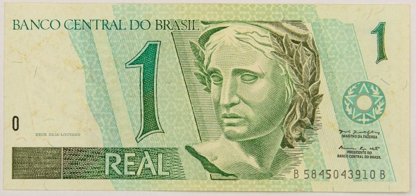 • Numismática, BRASIL. Uma Cédula 1 Real Flor de Estampa