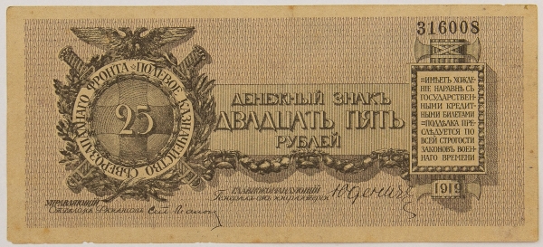 • Numismática, RUSSIA. Uma Cédula 25 Pybar 1919