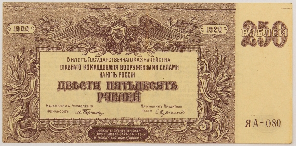 • Numismática, RUSSIA. Uma Cédula 250 Pybar 1920