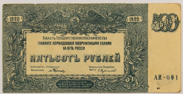 • Numismática, RUSSIA. Uma Cédula 500 Pybar 1920