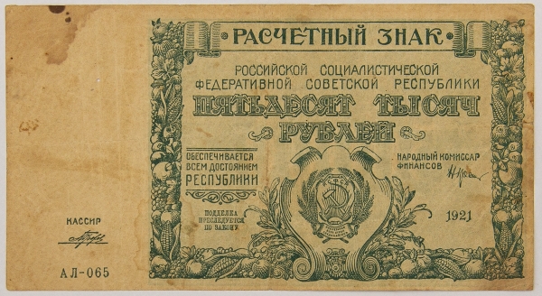 • Numismática, RUSSIA. Uma Cédula 50000 Pybar 1921