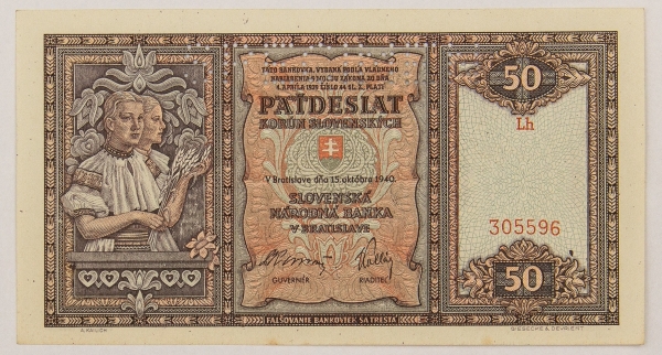 • Numismática, SLOVAKIA. Uma Cédula 50 Korun Specimen