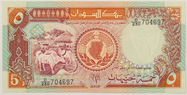 • Numismática, SUDAN. Uma Cédula P-40 5 Pounds 1997 Flor de Estampa