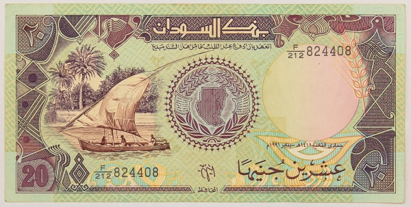• Numismática, SUDAN. Uma Cédula P-42 20 Pounds 1997 Flor de Estampa