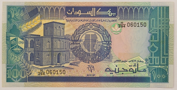 • Numismática, SUDAN. Uma Cédula P-50 100 Pounds 1992 Flor de Estampa
