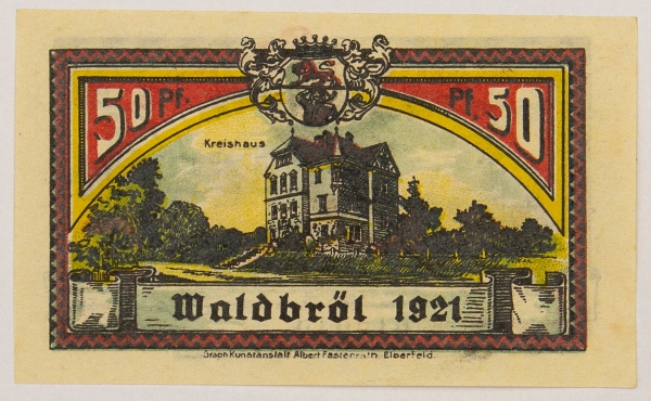 • Numismática, NOTGELD. Uma Cédula Waldbröt 50 Pfennig 1921
