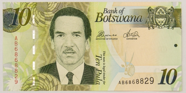 • Numismática, BOTSWANA. Uma Cédula P-30 10 Pula 2009 Flor de Estampa