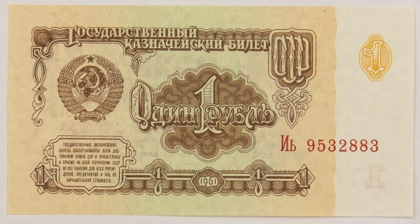 • Numismática, RUSSIA. Uma Cédula 1 Rublo 1961 Flor de Estampa