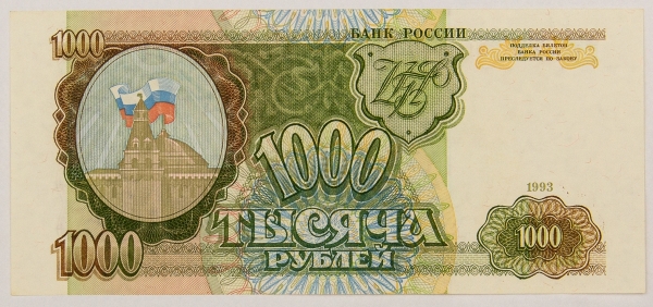 • Numismática, RUSSIA. Uma Cédula 1000 Rublos 1993 Flor de Estampa
