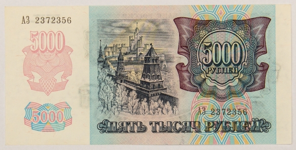 • Numismática, RUSSIA. Uma Cédula 5000 Rublos 1992 Flor de Estampa