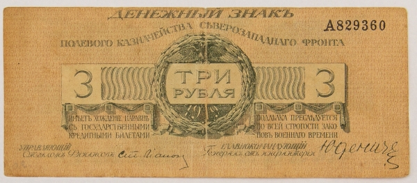 • Numismática, RUSSIA. Uma Cédula 3 Pybar 1919