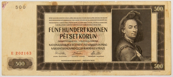 • Numismática, BOHEMIA & MORAVIA. Uma Cédula P-11 500 Korun 1942