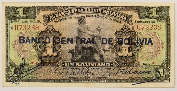 • Numismática, BOLIVIA. Uma Cédula P-112 1 Boliviano 1929