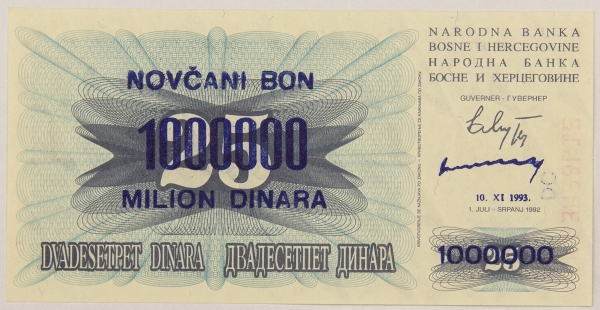 • Numismática, BOSNIA & HERZEGOVINA. Uma Cédula P-35 1000000 Dinara 1993 Flor de Estampa