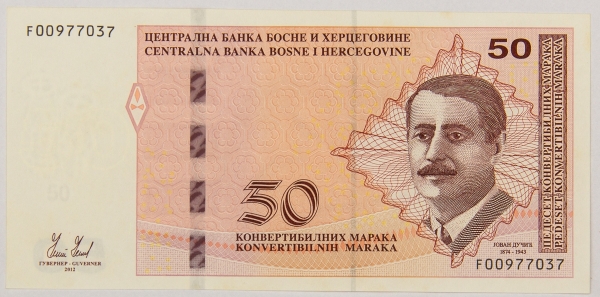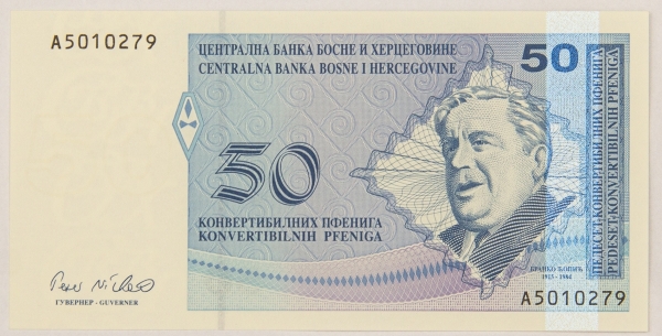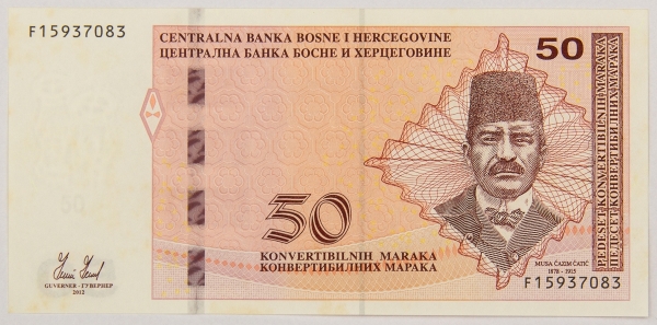 • Numismática, BOSNIA & HERZEGOVINA. Uma Cédula P-68 50 Maraka 1998 Flor de Estampa