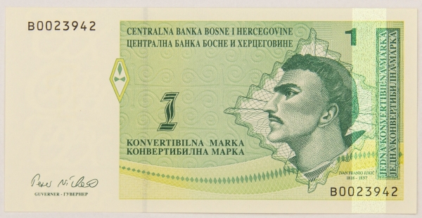 • Numismática, BOSNIA & HERZEGOVINA. Uma Cédula P-59 1 Marka 1998 Flor de Estampa