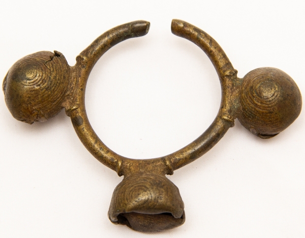 • Numismática, Ogondo ou manila. Moeda de troca e adorno de origem africana. Possui o formato de pulseira. Muito colecionável, com grande procura no mercado numismático internacional e também como peça exótica. No Brasil já existem recentes publicações à respeito. Exemplar proveniente de coleções europeias de mais de 50 anos de garimpo. Raríssimo exemplar com detalhes nas pontas e animal na parte superior. Preserva vestígios do solo onde foi encontrado. Exemplar inédito. 5,5x5,6cm. Possivelmente de criança. 25g.