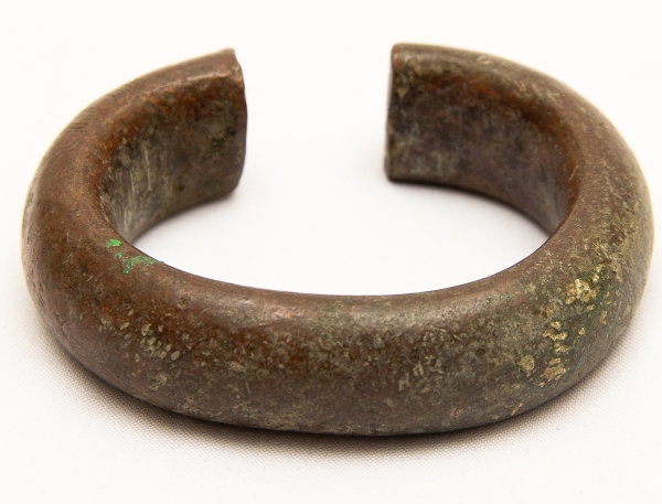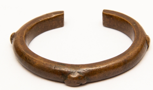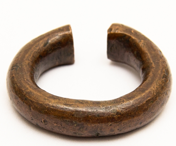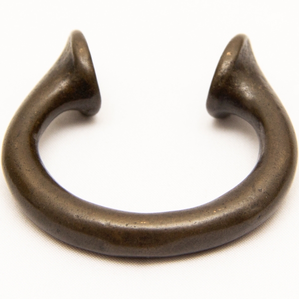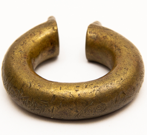 • Numismática, Ogondo ou manila. Moeda de troca e adorno de origem africana. Possui o formato de pulseira. Muito colecionável, com grande procura no mercado numismático internacional e também como peça exótica. No Brasil já existem recentes publicações à respeito. Exemplar proveniente de coleções europeias de mais de 50 anos de garimpo. Exemplar muito antigo. 80x75mm. 104g. Detalhes tribais Pátina do tempo. Marcas de uso.