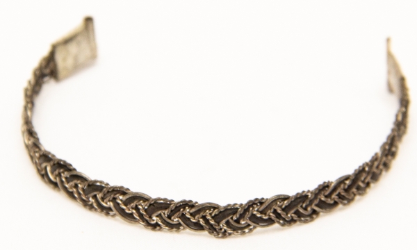 • Pulseira em prata trançada com fios de rabo de elefante rústica e rara. Peça com símbolo de boa sorte. 55mm fechada. 17cm aberta.