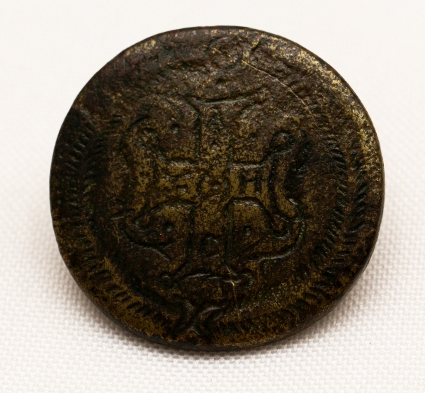 • Botão metálico com 30mm. Muitos séculos, criação / princípio da utilização com aspectos das cruzadas. Para estudo.