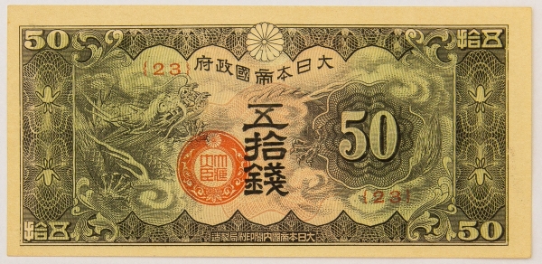 • Numismática, JAPAN. Uma Cédula 50 Sen Flor de Estampa