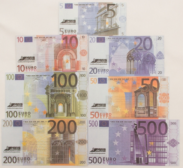 • Numismática, EUROPA. Sete Reproduções de Cédulas da Reis Euro Systems