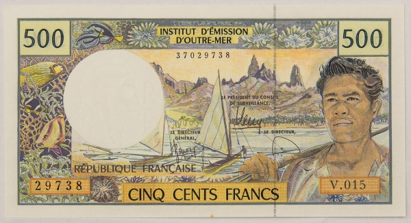 • Numismática, FRENCH PACIFIC TERRITORIES. Uma Cédula P-5 500 Francs 2004 Flor de Estampa
