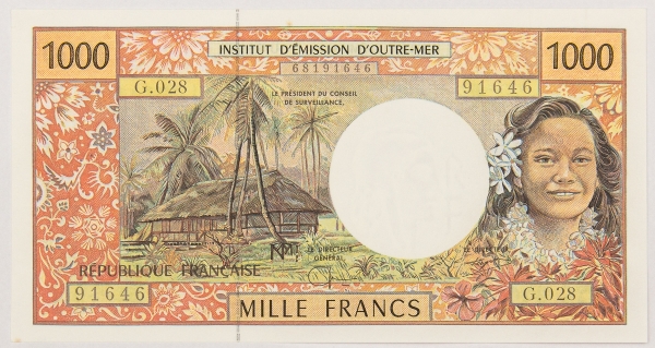 • Numismática, FRENCH PACIFIC TERRITORIES. Uma Cédula P-6 1000 Francs 2004 Flor de Estampa