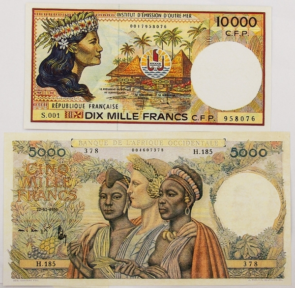 • Numismática, FRENCH PACIFIC TERRITORIES. Duas Réplicas de Cédulas Raras P-7 e P-8